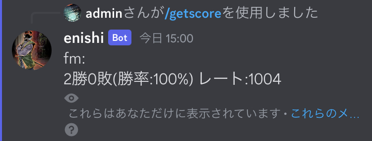 個人成績は /getscore コマンドで確認できます。